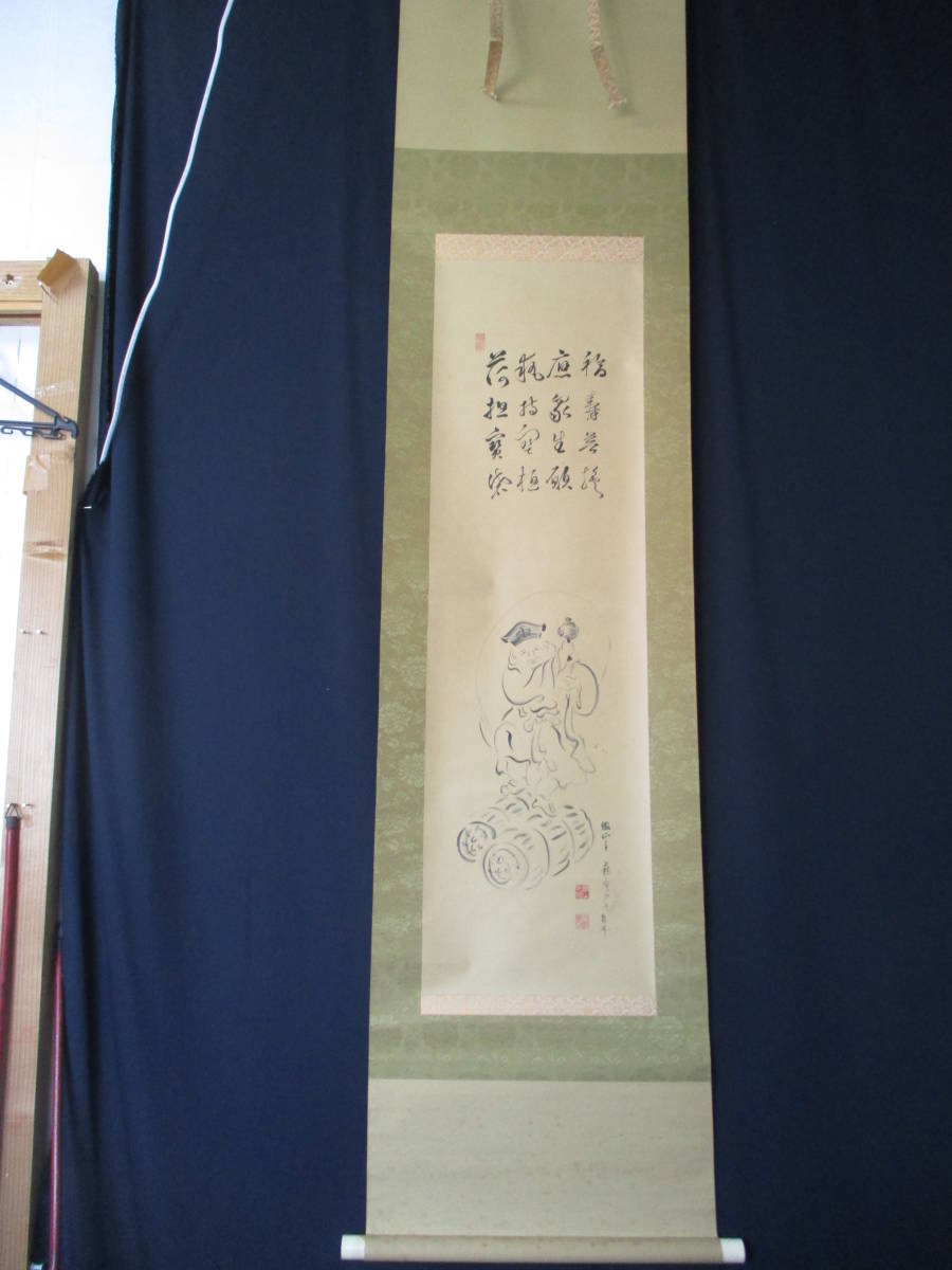 - ☆掛軸 縁起物 大黒様? サイズ:縦184.5㎝ 横42㎝ シミ汚れ多いです あゆ-3☆