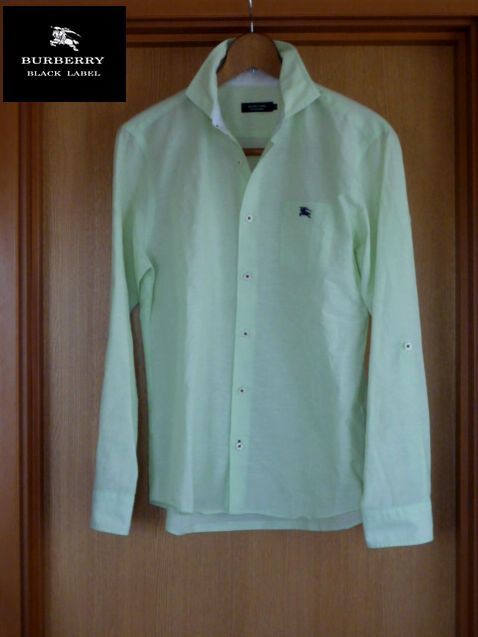 > BURBERRYバーバリーブラックレーベル◆B.D麻混シャツ ペパーミントグリーン サイズ 2 USED 美品