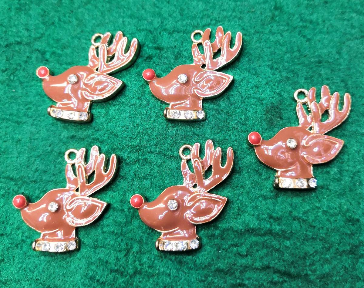 - ラキラ綺麗で可愛いトナカイのチャーム5個セット送料全国一律ゆうメール180円