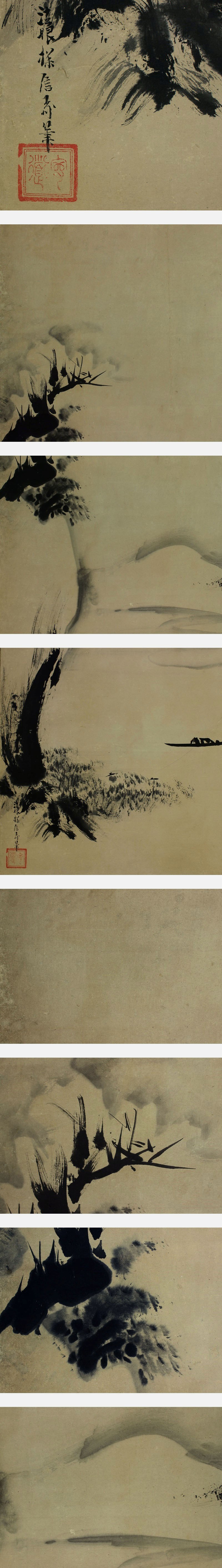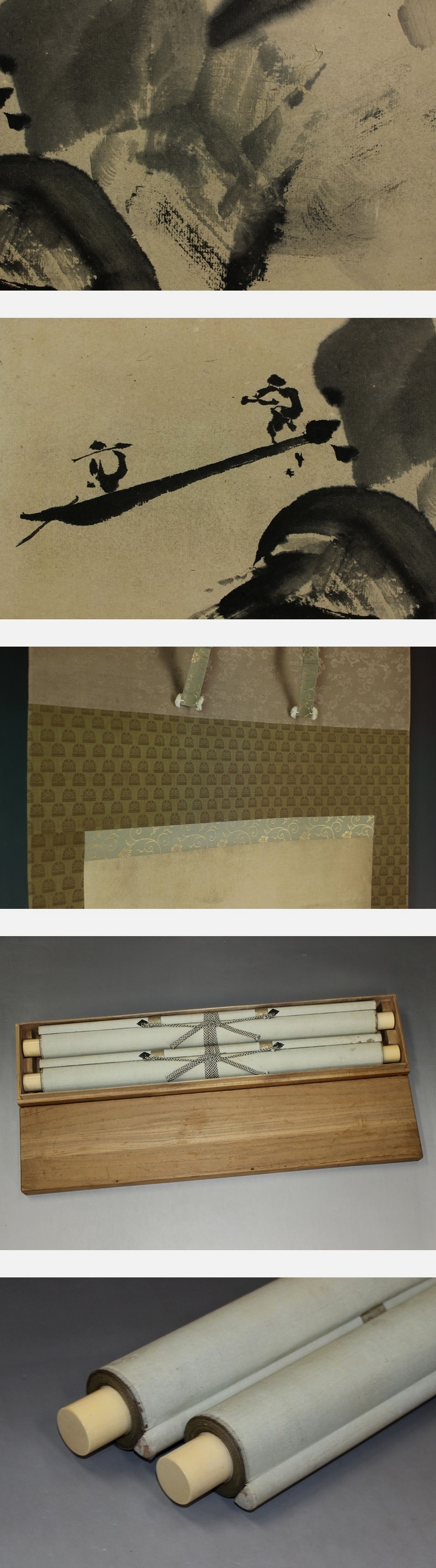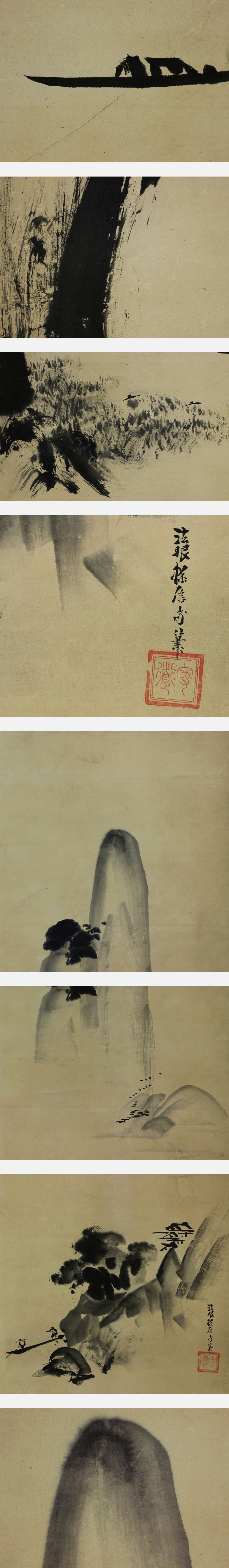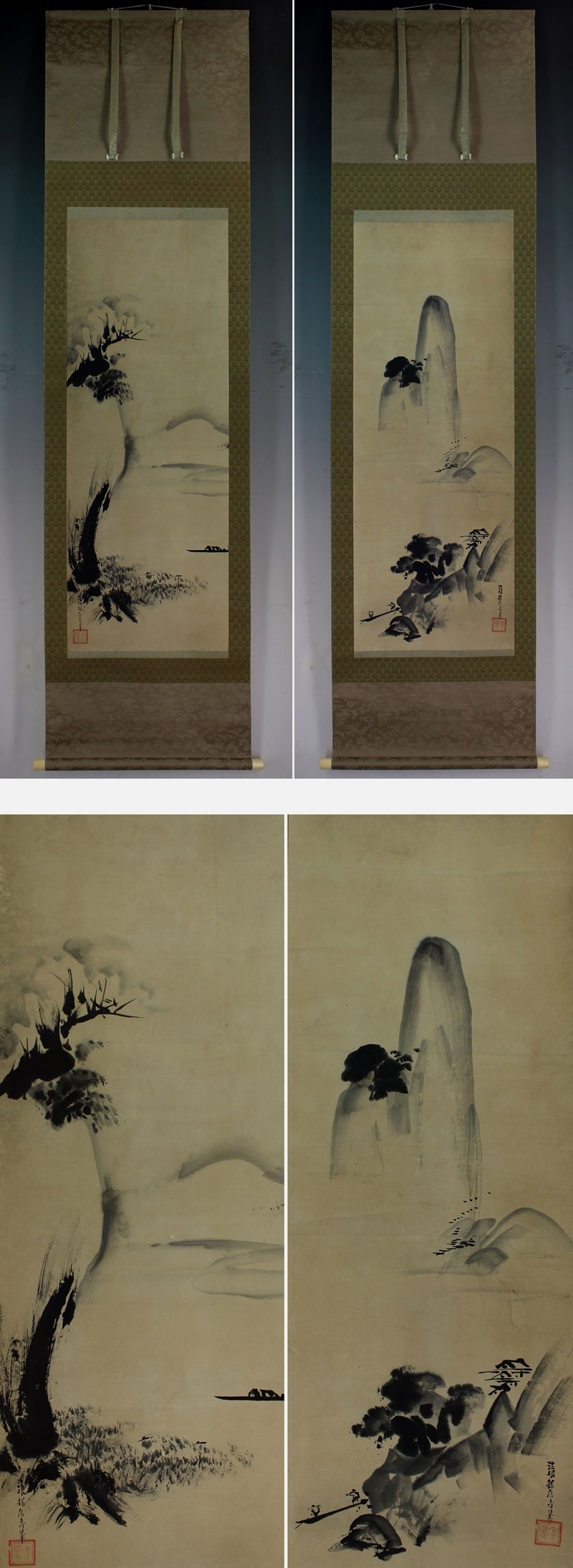 - 名品【真作】狩野探信【双幅・水墨山水】◆紙本◆合箱◆掛軸 w02068