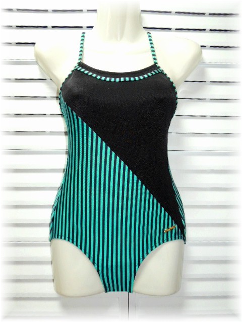 - nice marine バッククロス ワンピース水着 9号/M ブラック×グリーン