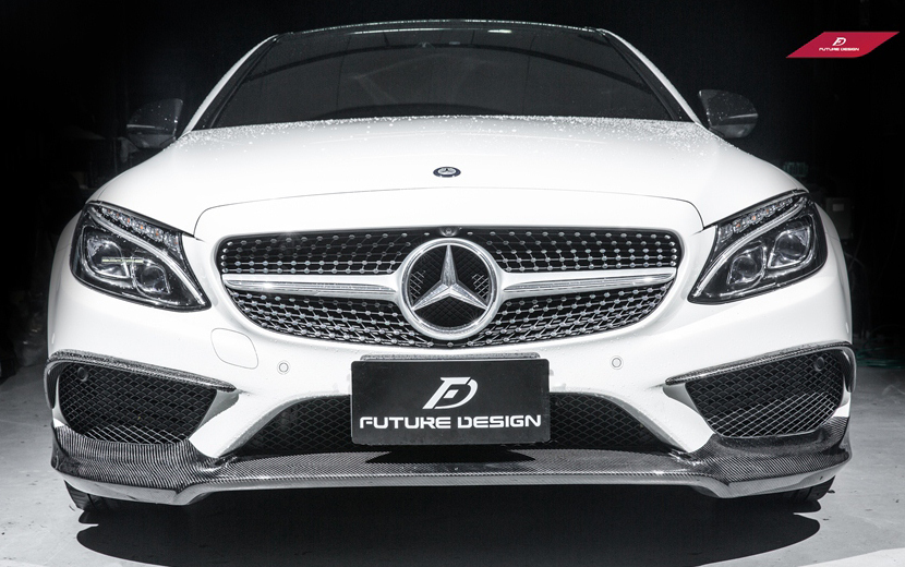 > BENZ メルセデス・ベンツ C-Class W205 C205 S205 AMGフロントバンパー用リップスポイラー 本物DryCarbon ドライカーボン C43 C200 C S L