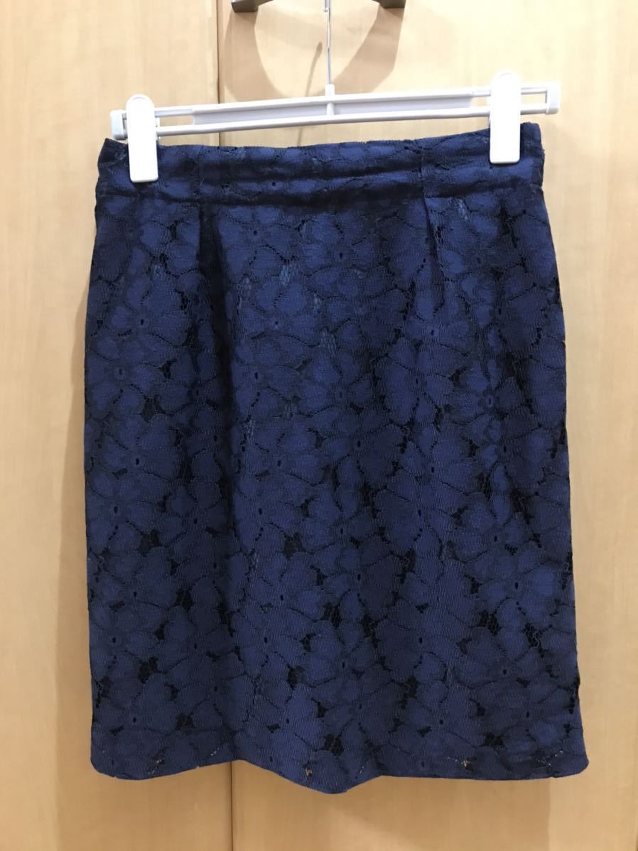 - Persodea★ネイビー 総レース タイトスカート L 13号 紺 ウエストゴム付き ネイビー