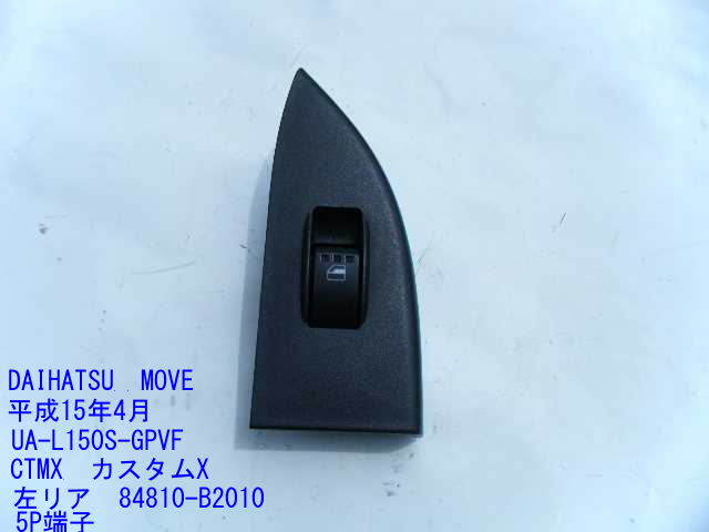 - ◆L150S MOVE ムーヴカスタム ムーブ 左リア パワーウインドスイッチ パワーウインドウ 84810-B2010 純正 中古 即決 [8248]