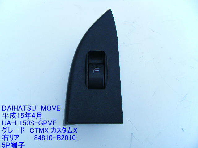 - ◆L150S MOVE ムーヴカスタム ムーブ 右リア パワーウインドスイッチ パワーウインドウ 84810-B2010 純正 中古 即決 [8233]