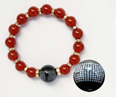 - 「般若心経彫刻」オニキス大玉・赤瑪瑙ブレスレット 20cm