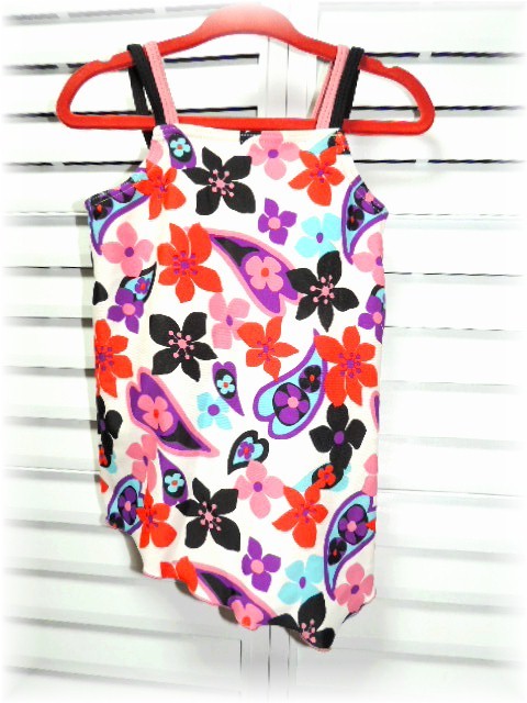 - F・Oインターナショナル ワンピース水着 100cm ホワイト地×花柄 ヘイレム裾