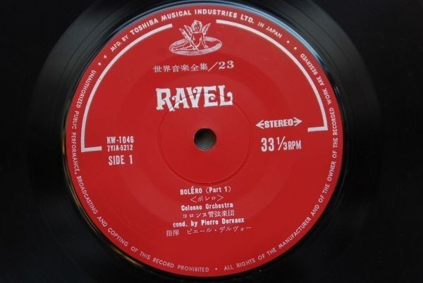 - q2352】レコード 世界音楽全集23 ラヴェル ボレロ 指揮:ピエール・デルヴォー コロンヌ管弦楽団 STEREO(33 1/3rpm) アナログ