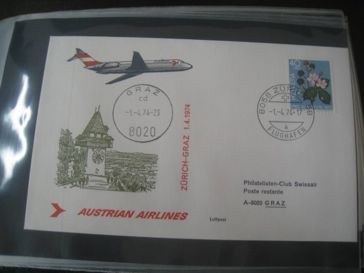 - ★F222 FDC/FFC初日カバー1974 オーストリア航空 チューリッヒ - グラーツ -