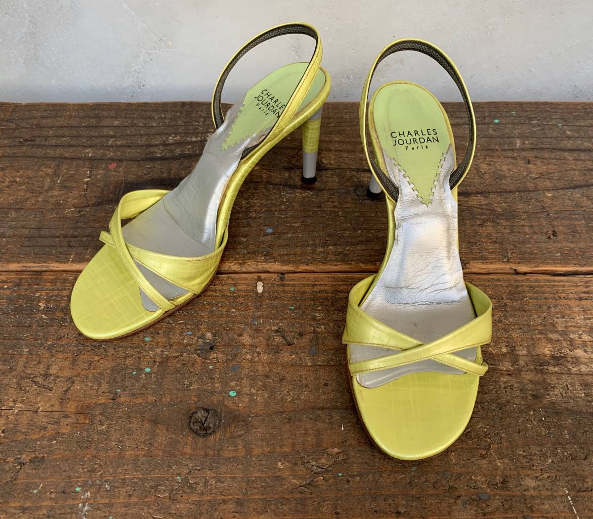 > ★ジャパンメイド★CHARLES JOURDAN★シャルルジョルダン★サンダル★ハイヒール★レザー★くつ★ライム★グリーン★サイズ7★