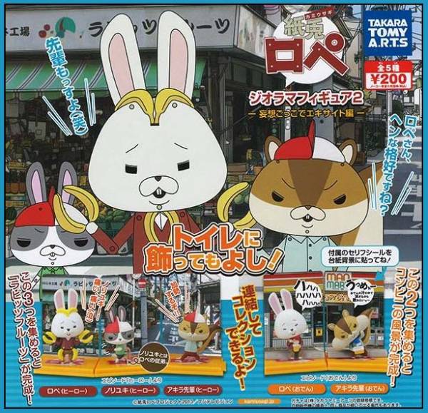 - ◆紙兎ロペ ジオラマ フィギュア Part.2 妄想ごっこでエキサイト 編…全5種 (アキラ先輩,ロペ,ノリユキ、ラビッツフルーツ) 情景フィギュア