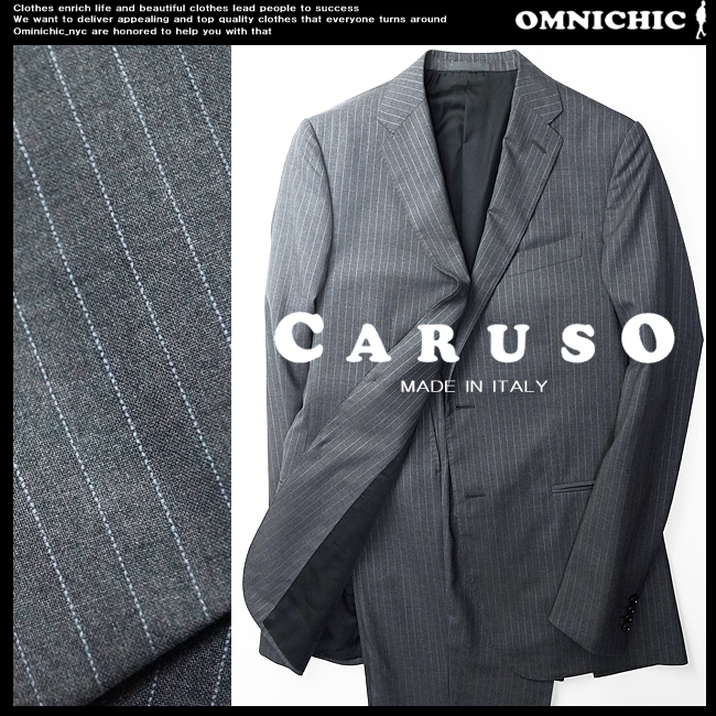 > ■新品19.8万【CARUSO】名門最高峰カルーゾ/MANON/SUPERFINE CLOTH/贅沢光沢ウールマノン2Bテーラードスーツ52/ストライプ/日本XL相当
