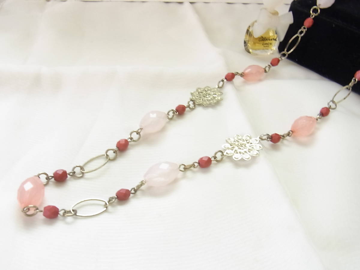 - アジアン調 桜色カラーとオレンジピンク系?のカラーのカッティングが綺麗なビーズストーン ロングネックレス★★
