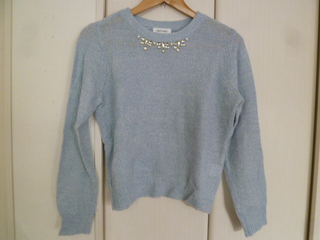 - FREE,S MART/フリーズマート○水色パールビジュー付きニットセーターM/フリーズショップ○⑥ST1022