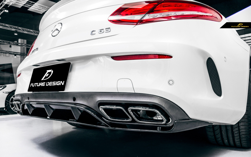 - 【FUTURE DESIGN】BENZ メルセデス・ベンツ C-Class 前期 C205 クーペ 専用 C63 S ED1仕様 リア ディフューザー 艶ありブラック C180 C200
