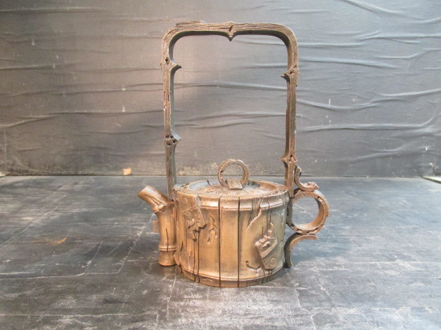 - 落款有 石彫 細密容彫竹細工型 手付水注 茶器 462g