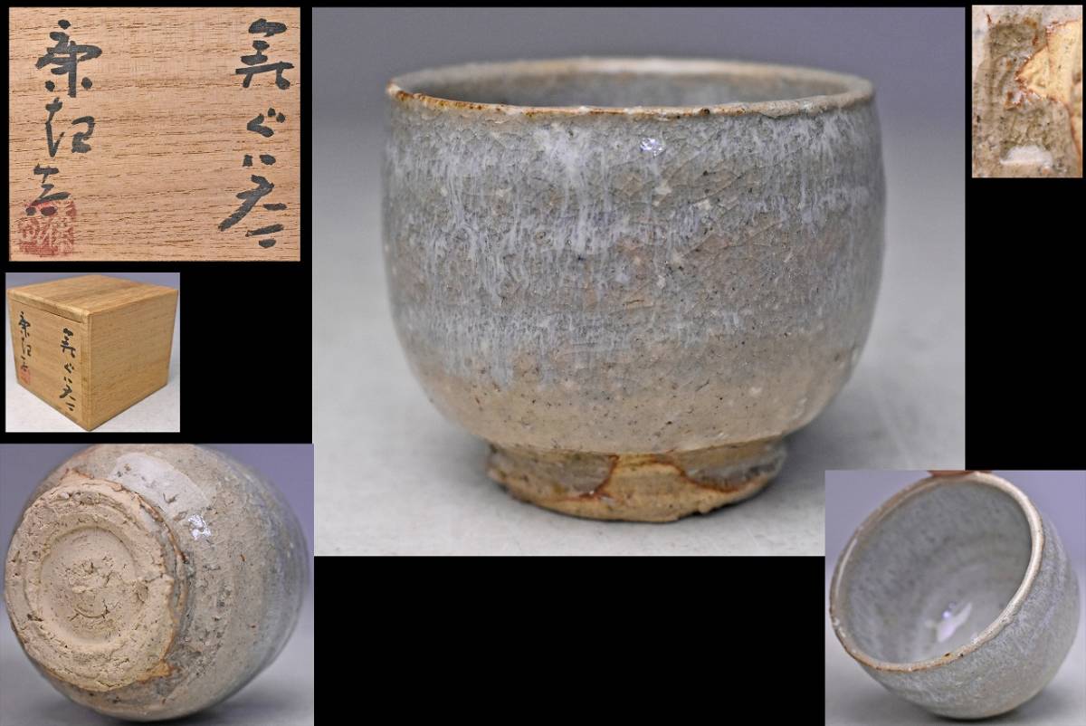 > 野坂康起 ★ 萩ぐい呑 ★ 共箱 ★ 上作 ★ 薄めの藁灰釉 ★ 高台しっかり ★ 人間国宝 荒川豊蔵 師事 ★ 良いぐい呑