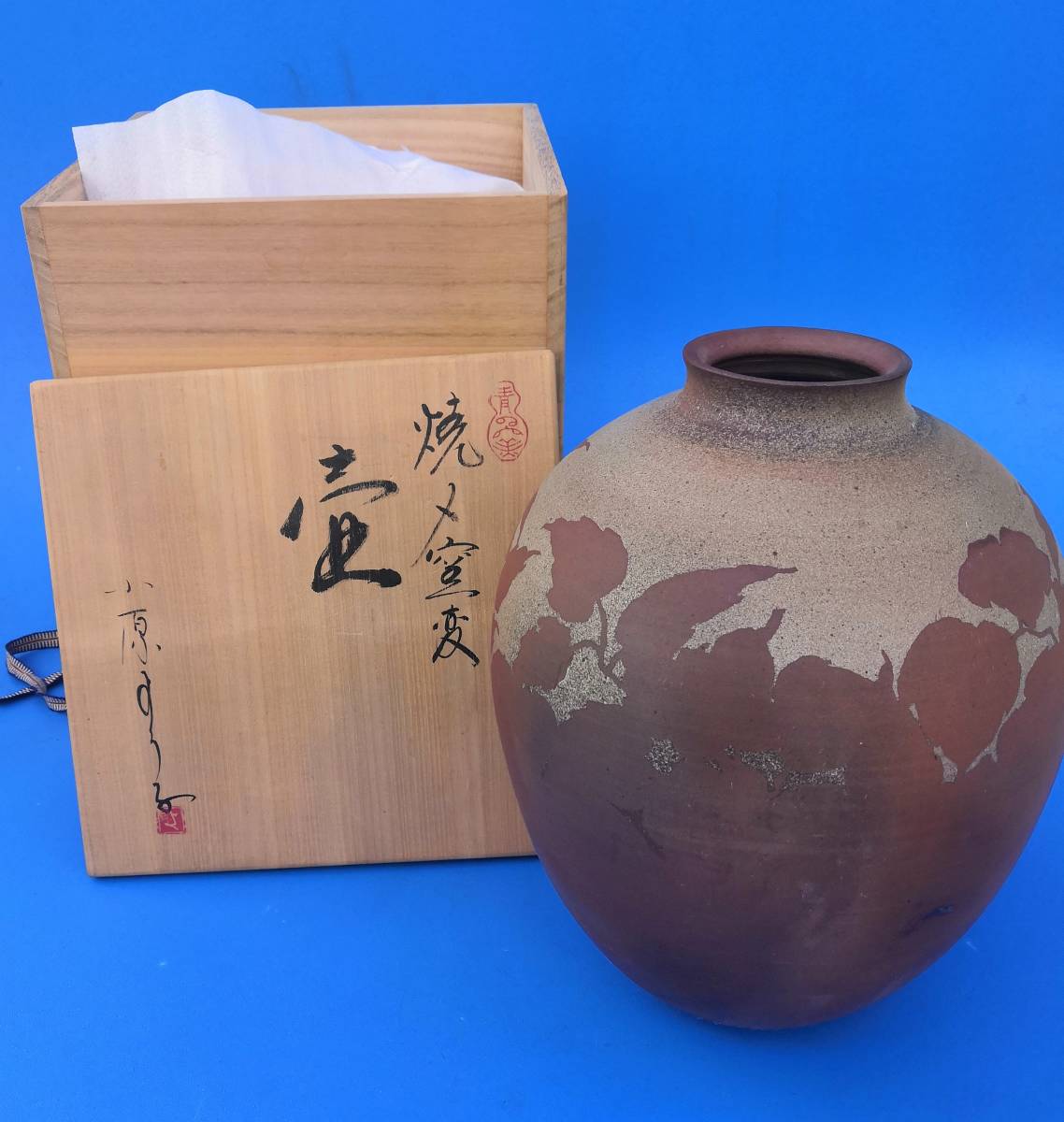 - 小原よう子作焼き締め窯変壺サイズ高さ約29cm日本工芸会員 花器 陶器 共箱 美術品