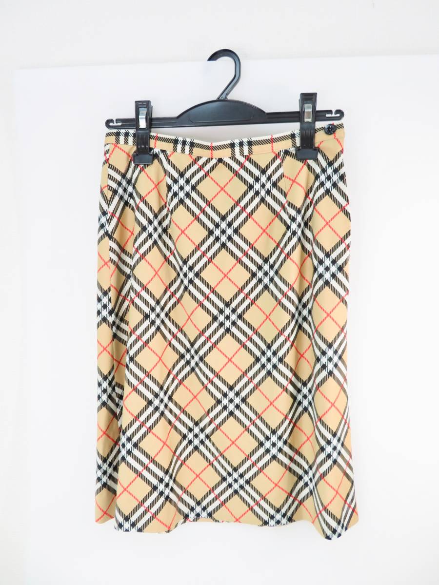 > 未使用品◇Buberrys バーバリー ブルーレーベル ノバチェック 膝丈 スカート 38 Mサイズ ファスナー ボタン 管理2011 店内