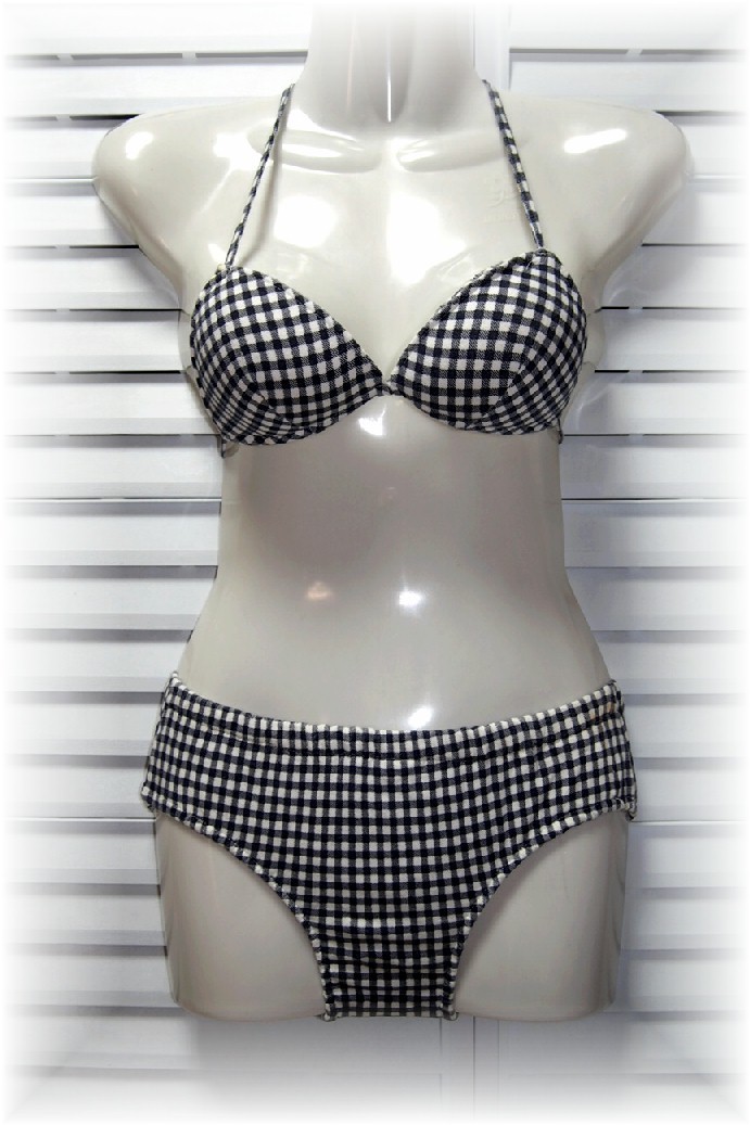 - イトキン セパレート水着 ビキニ 9号/M ブラック×ホワイトギンガムチェック