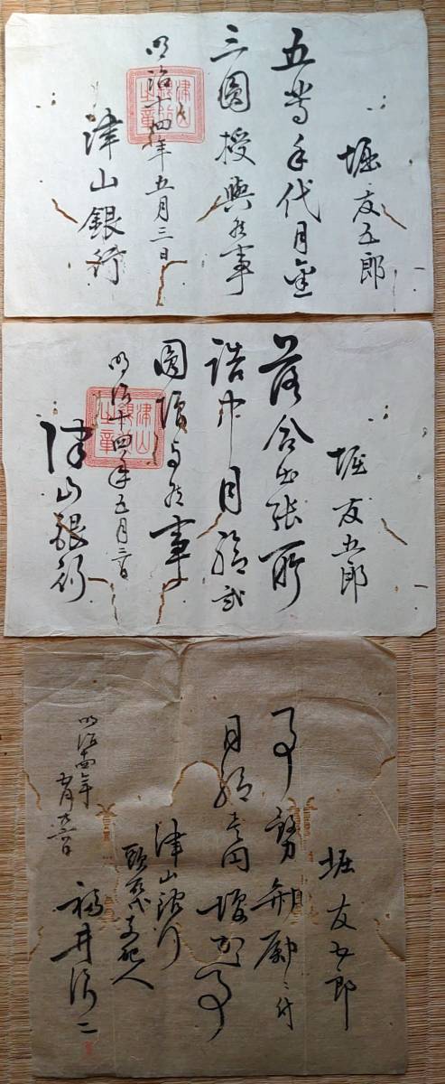 - f20120610〇明治人の記録 津山銀行 手代 3枚 明治14年 兵庫県明石郡垂水村出身 現在の中国銀行の前身〇和本古書古文書