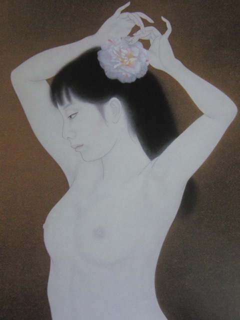 - 前本利彦、【花櫛】、希少な額装用画集より、新品額装付、状態良好、送料込み