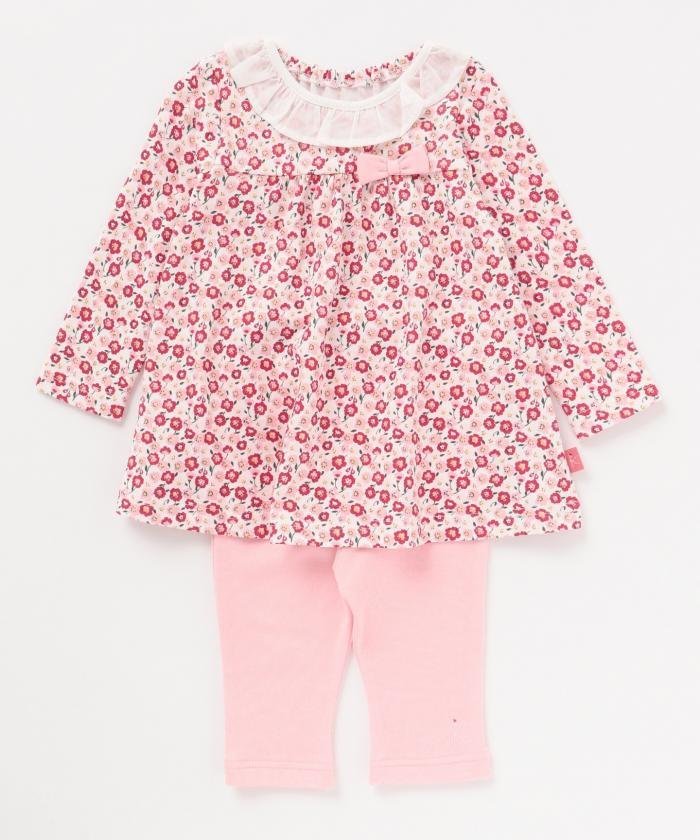 > 新品 ¥6600 組曲 クミキョク Kumikyoku 2点 セットアップ チュニック ワンピース スパッツ 女の子 80cm ベビー 出産祝い ピンク 赤