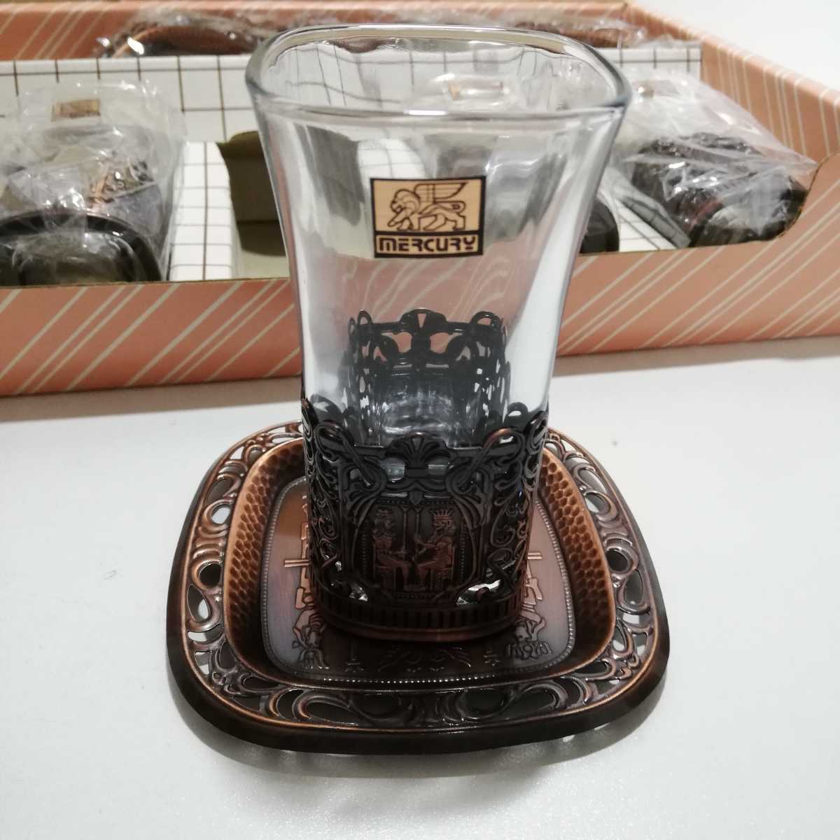 > MERCURY マーキュリー 角型ブロンズ仕上げ 一口ビールグラス 5客セット 未使用 [レトロ 昭和 一口グラス 一口タンブラー ビアグラス]