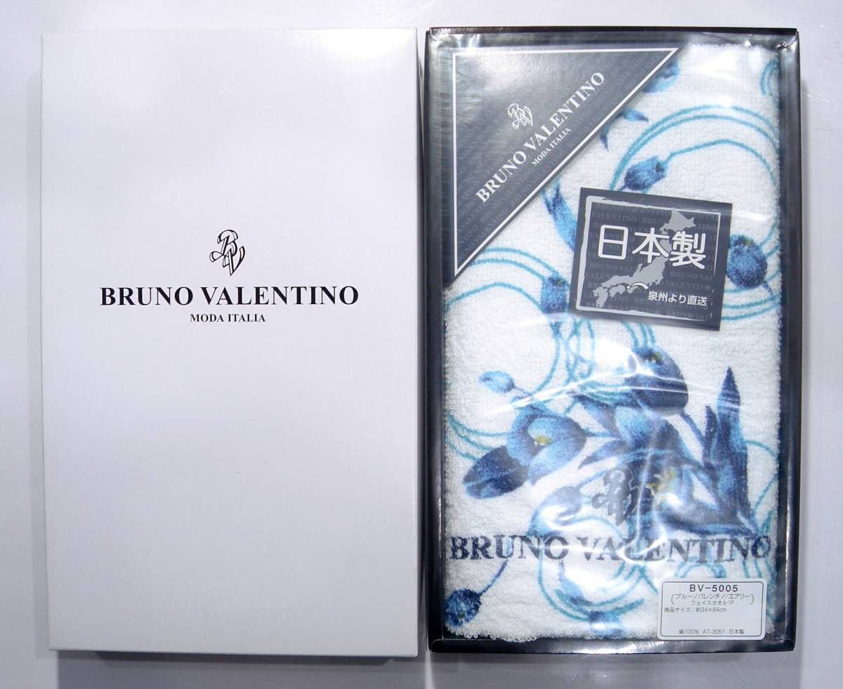 - 送料450円~新品BRUNO VALENTINO MODA ITALIAフェイスタオル1P綿100%日本製BV-5005泉州タオル大阪MADE IN JAPAN花柄ブルーノバレンチノ白青