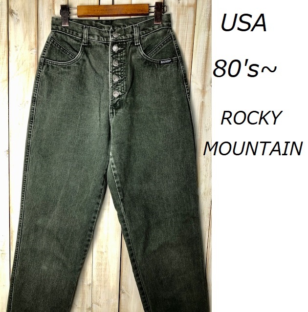 > USA古着 80s~90s USA製 デザインカラーデニムパンツ 緑グレー 29/9 ROCKY MOUNTAIN ヴィンテージ ユニセックス ワイドテーパード ●21