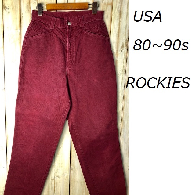 - USA古着 80s~90s デザインカラーデニムパンツ エンジ 30/11 ROCKIES オールド ヴィンテージ ユニセックス ワイドテーパード ●24