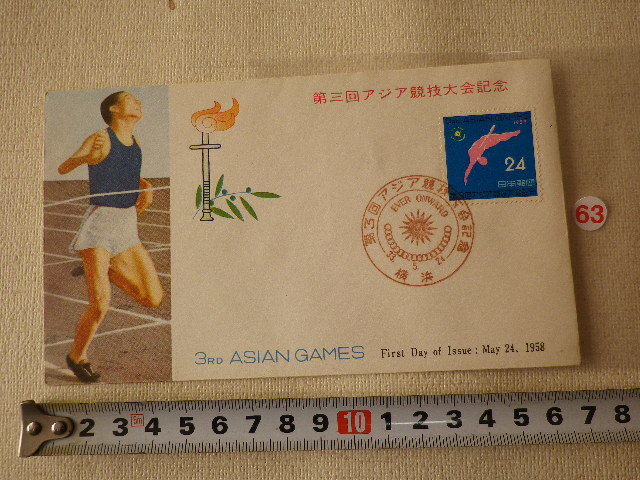 - FDC 第3回アジア競技大会 1貼1消 1958年 解説書無●63●送料94円●
