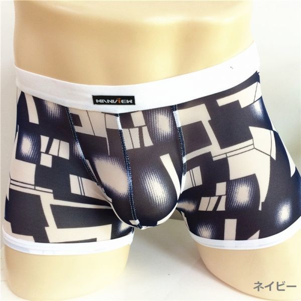 - 送料無料 匿名発送!メンズ下着 ボクサーパンツ ローライズ 下着 もっこり 過激 快適 シースルー 透け C0078 ネイビー M
