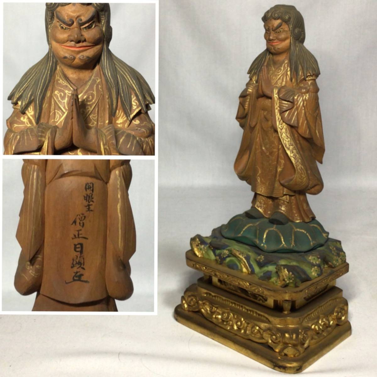 - 旧家よりの初出し 時代仏教美術 日蓮宗 木彫彩色立像 開眼主第67世法主日顕