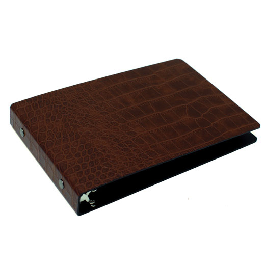 - 送料込み◆リサイクルレザー◆13穴リングバインダー◆クロコダイル型押しブラウン◆B-TAO