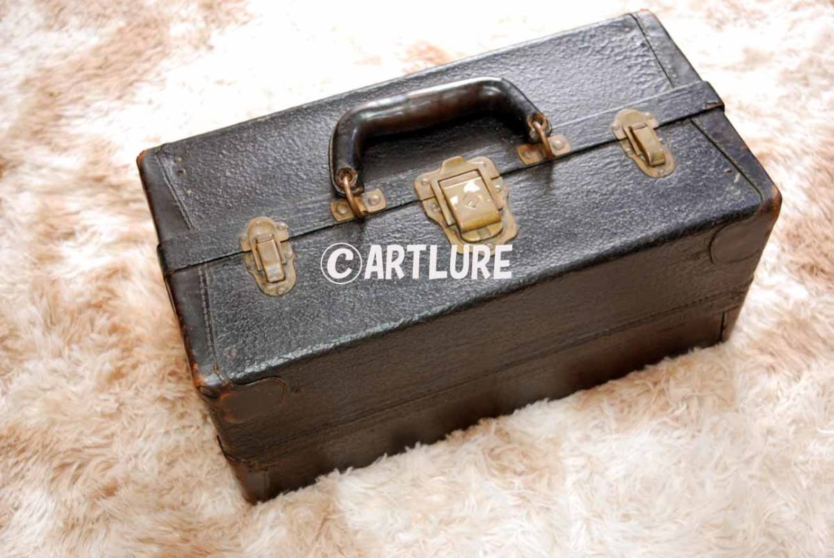 - 推定100年前のVINTAGE LEATHER TACKLE BOX KNICKERBACHER C 1920'S