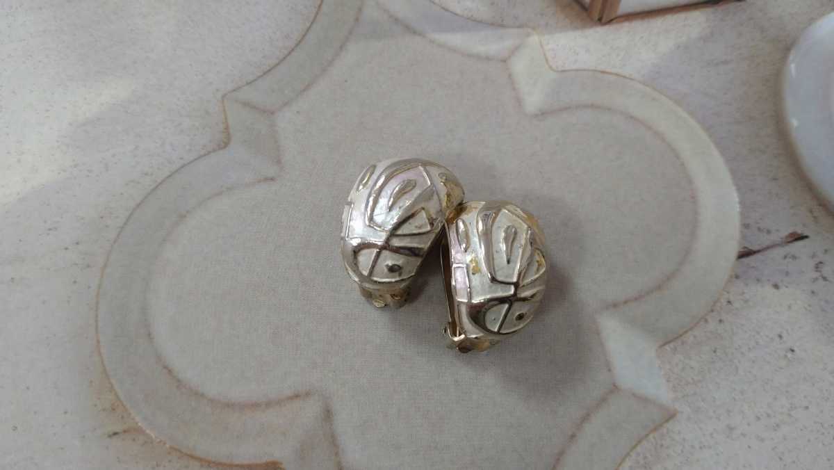 - □訳あり□ビンテージ感・シルバーカラーの模様入太リングイヤリング□