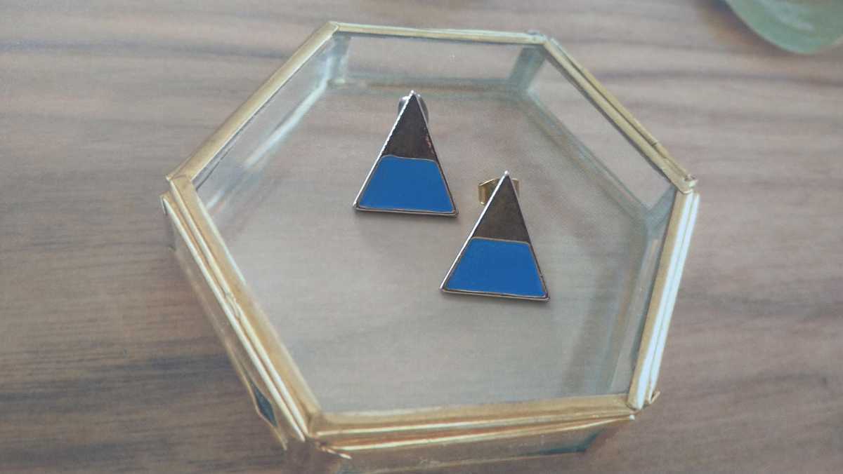 - □富士山のような三角形ピアス□シルバーカラー×青□