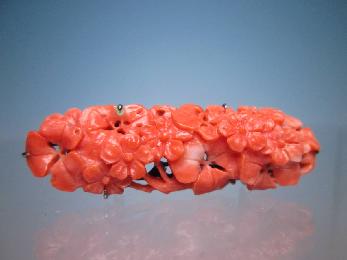 - ☆アンティーク・本珊瑚 緻密な小花彫刻の帯留め 4,38g