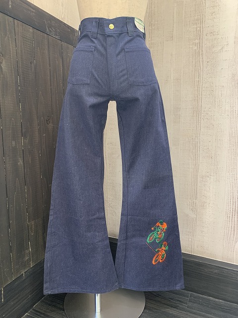 - USA製 アメリカ製 DEADSTOCK デットストック 70s ビンテージ ELY 競輪 バイシクルレース 刺繍 ライトオンス フレア デニム パンツ
