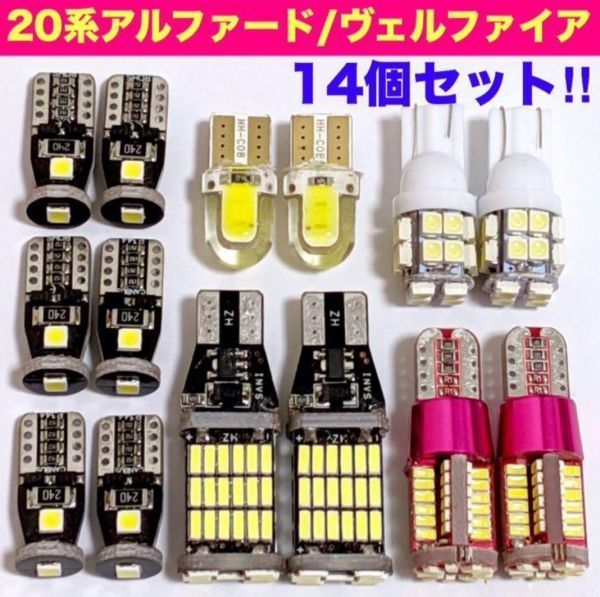 > ヴェルファイア/アルファード 適合 LEDバルブ ウェッジ球 T10 LED ルームランプ+ナンバー灯+バック+スモール ホワイト 14個セット