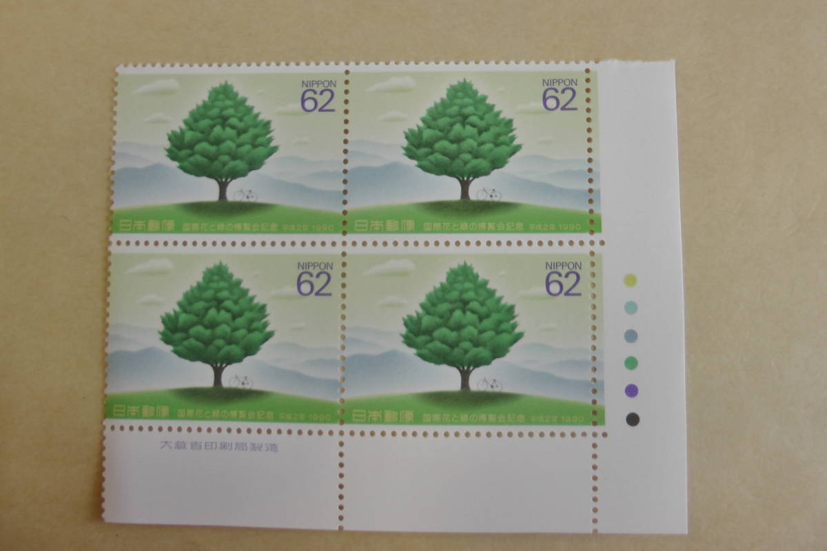 - 大蔵省印刷局製造 銘版付き 国際花と緑の博覧会記念記念 62円切手 4枚