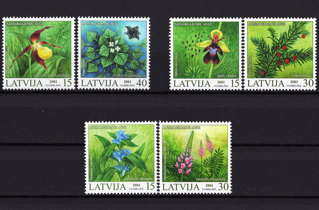 - ★2002-2004年 ラトビア - 「絶滅危惧種植物」6種完 未使用(MNH)★YH-472