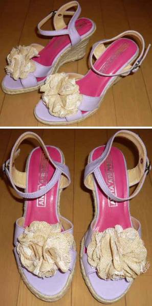 - ◆送料無料・匿名発送◆ お花が可愛い☆藤色サンダル☆ヒール部分もおしゃれ【新品・未使用】L