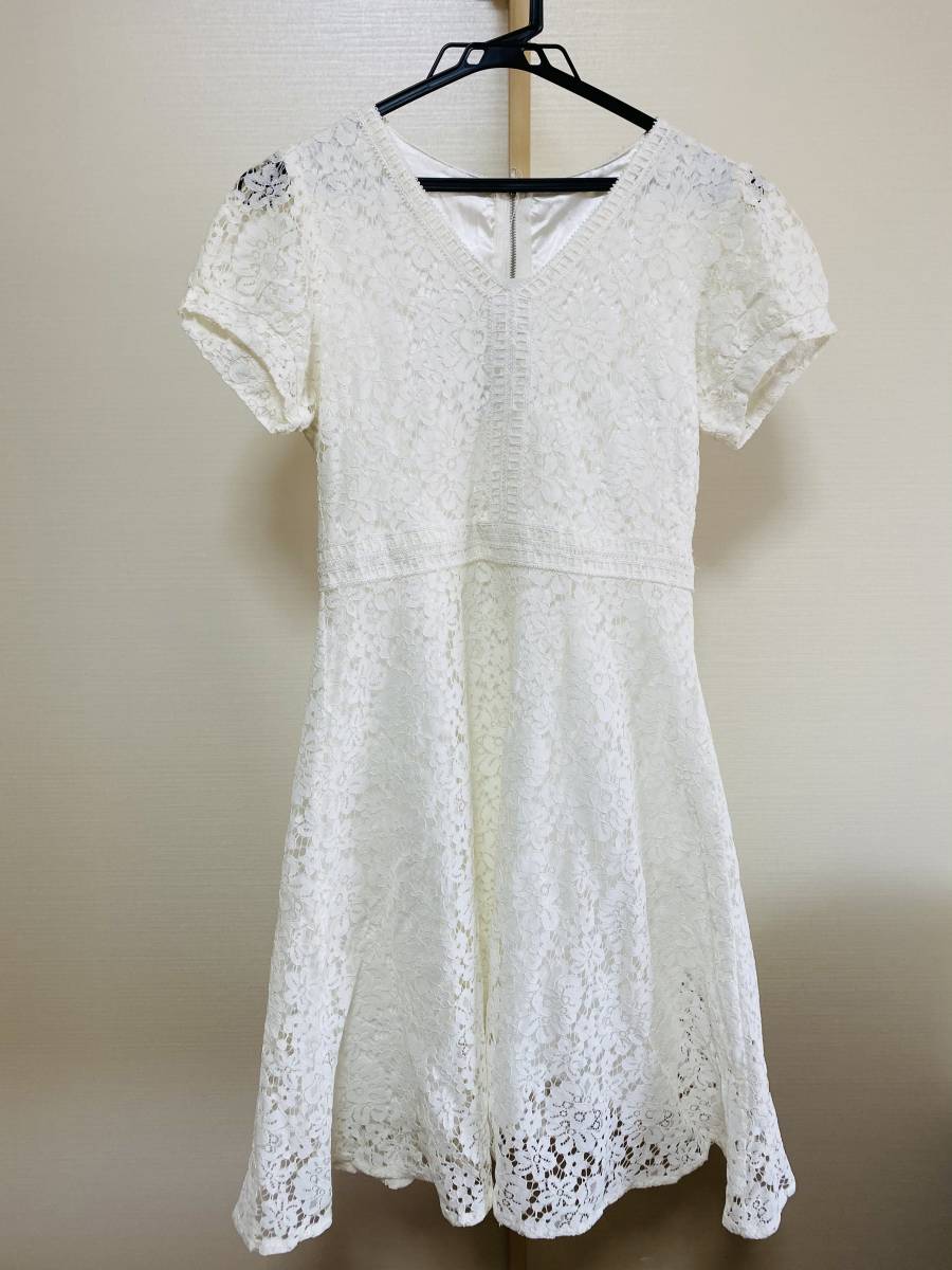 > 自宅保管品 Vネック 白いレースワンピース 半袖 夏ワンピース ひざ丈ワンピース Mサイズ tocco closet