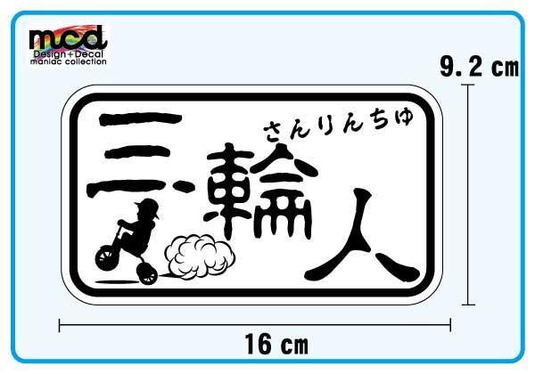 - 汎用 面白ステッカー子供用『三輪人(さんりんちゅ)』大きめサイズ16cm/白