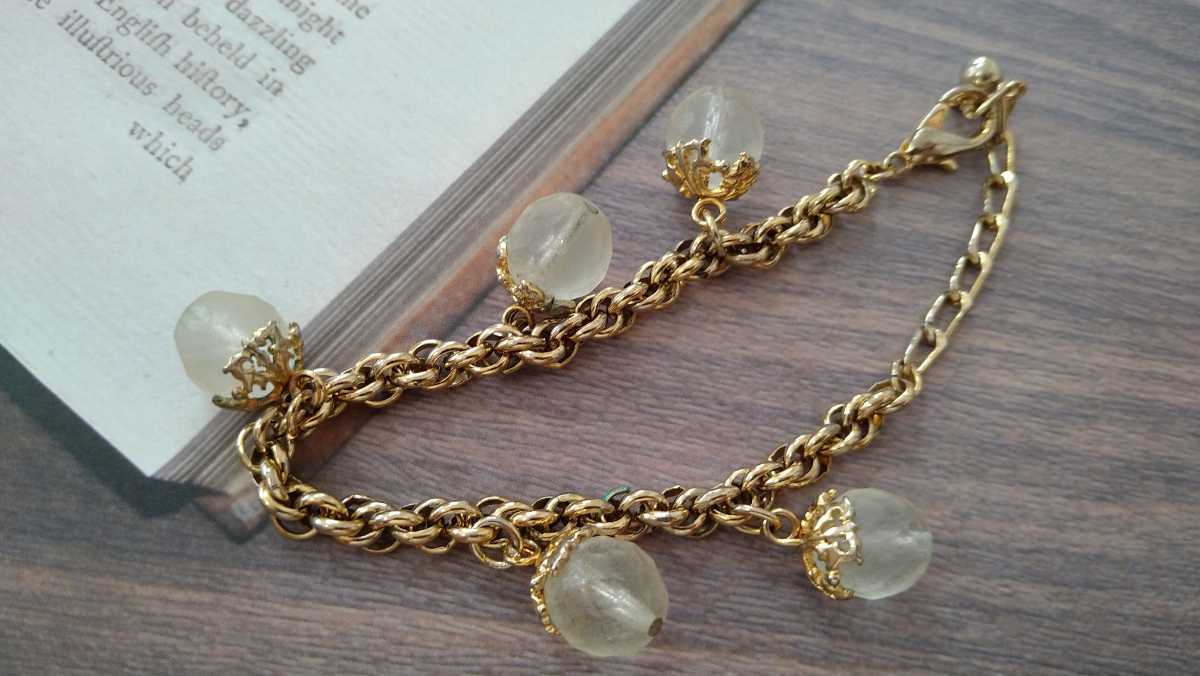 - □訳あり□ゴールドカラーチェーン×透かしガラスビジュー・チャーム□