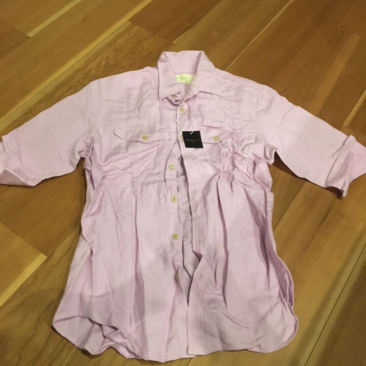 - 薄紫 半袖シャツ Mサイズ 刺繍 夏物 カッコいい 新品 タグ付き