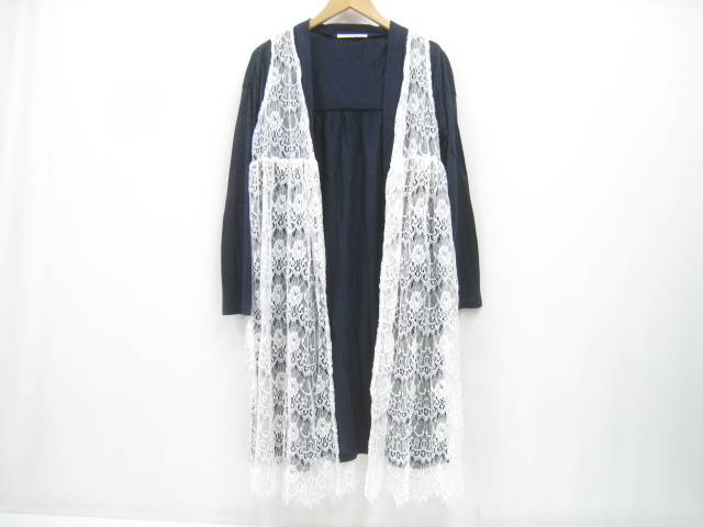 > alicia PAGEBOY アリシアページボーイ ロング 前開き カーディガン ネイビー ノースリーブレースカーディガン付き F フリーサイズ