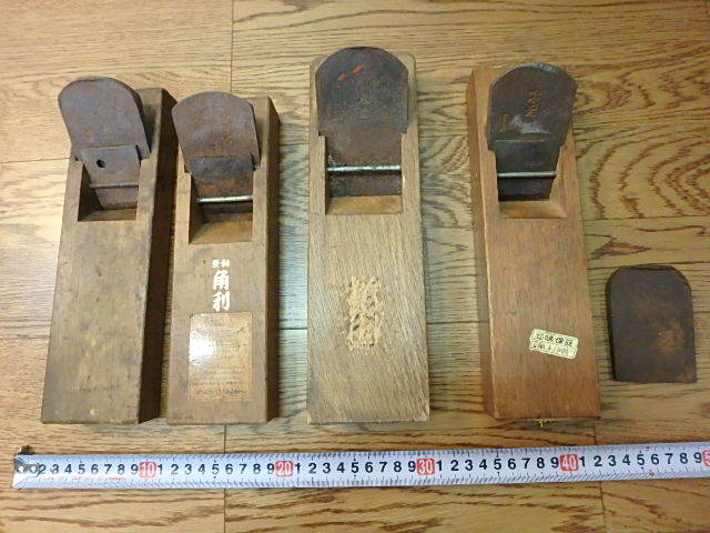- 80s105y 中古 古いカンナ 鉋 4点 大工道具 工具 レトロ まとめて 秀康 角利 字光 東龍 喜楽 錆 ジャンク(北海道・沖縄・離島は発送不可)